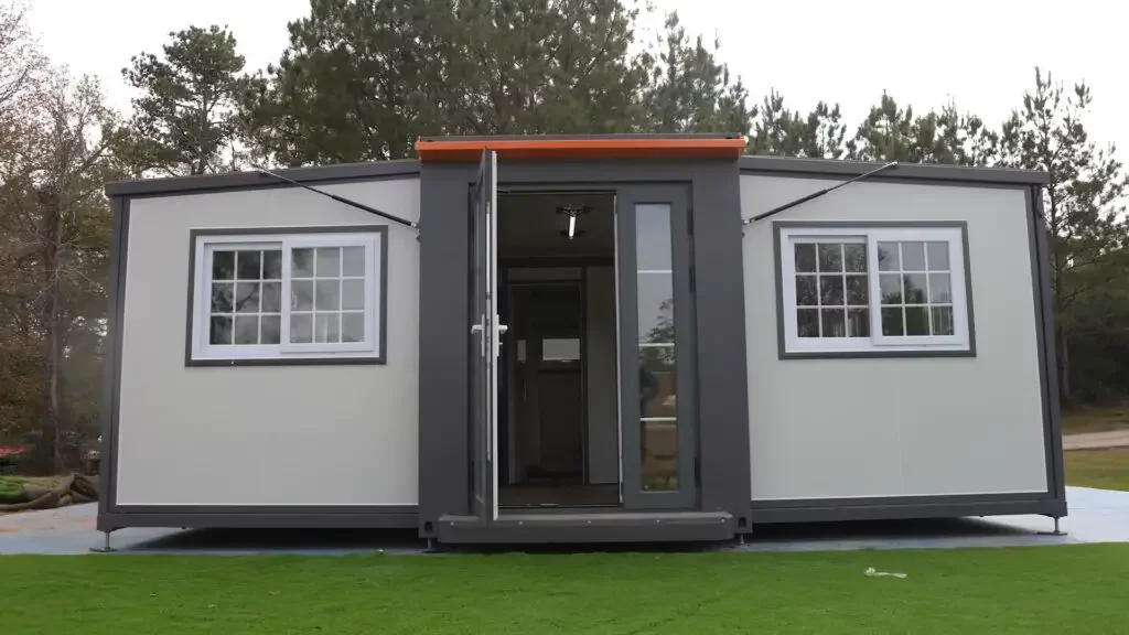 The model he featured—the “DOINUO Mobile Expandable Prefab House”—comes equipped with a restroom and an outdoor storage shed. With standard dimensions of L19 x W20 x H8 ft, it offers a surprisingly spacious interior and generous storage capacity for a home of its size.