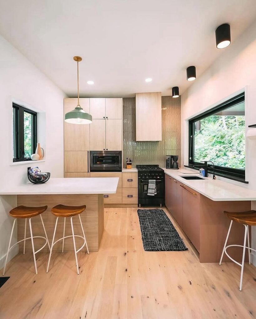 The home’s design thoughtfully integrates indoor and outdoor living, with large windows and doors inviting natural light to flood the interior. From sunrise to sunset, every space benefits from the beauty of its forested surroundings.