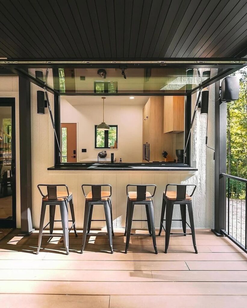 One of the most eye-catching features is the series of expansive decks and terraces. Wrapped with sleek black railings and adorned with soft string lights, these outdoor spaces offer the perfect setting for relaxation, dining, and social gatherings.