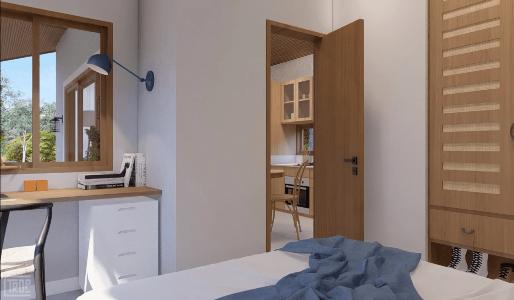 This single-storey small house has been thoughtfully designed by Tropic Design for anyone seeking a simple, peaceful way of living. Surrounded by nature and accompanied by the soothing sound of birds, this detached tiny house offers an ideal escape for those who want to reconnect with the outdoors and embrace a calm, minimalist lifestyle.