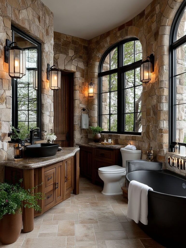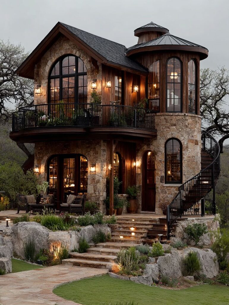 This enchanting stone cottage stands gracefully on a rocky hillside, blending storybook charm with refined craftsmanship. Its warm, rustic materials and elegant architecture make it feel like a magical retreat tucked away from the modern world.