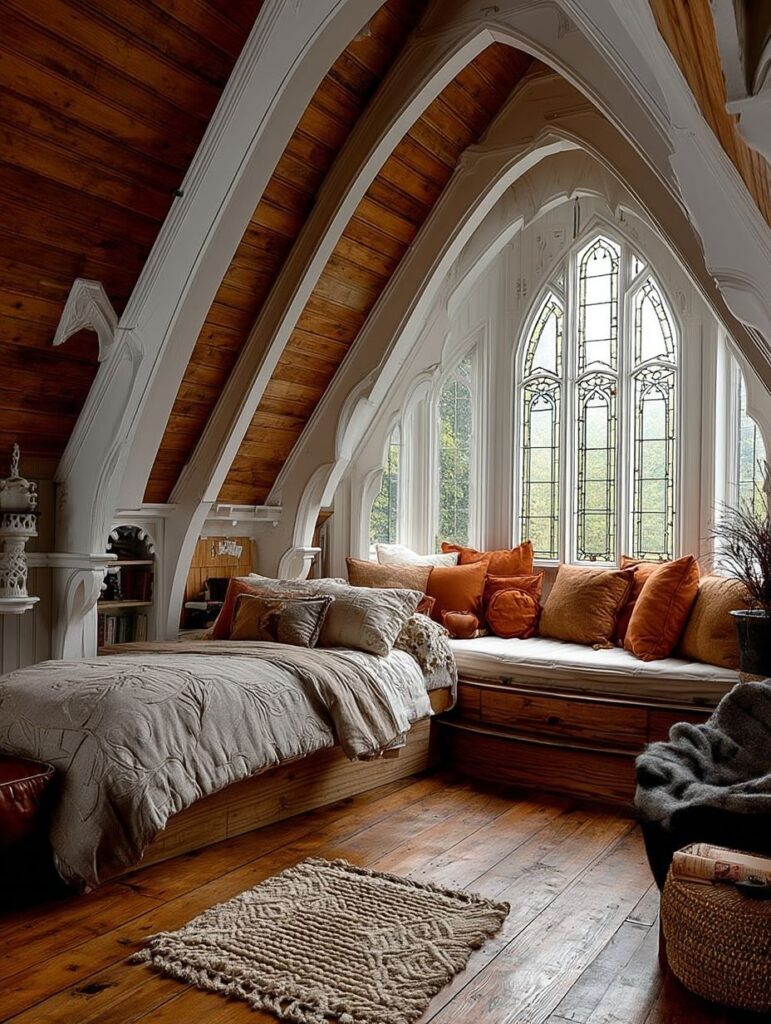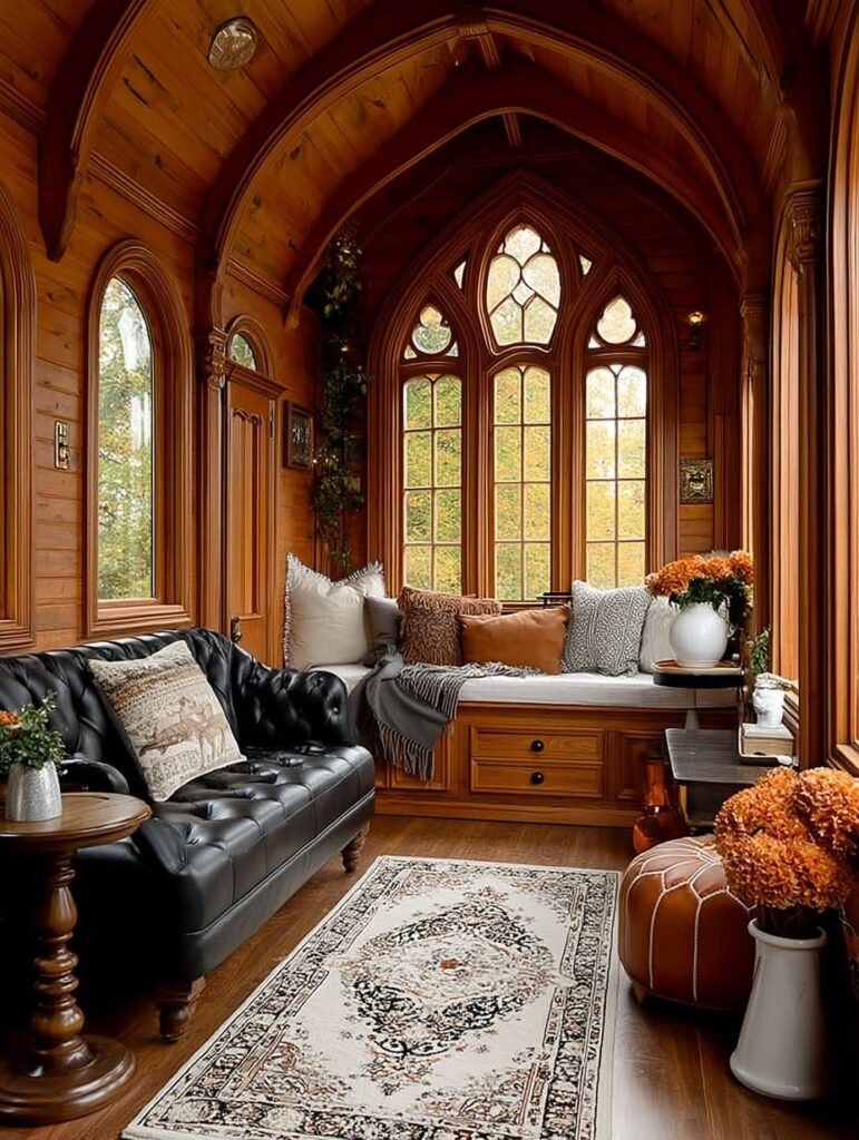 The cottage’s windows are thoughtfully designed, featuring elegant arched frames that allow abundant light to pour inside. Their symmetry and curvature enhance the home’s fairytale charm, while the white mullions stand out beautifully against the warm exterior. Some windows are trimmed with small climbing vines, adding a touch of romance.
