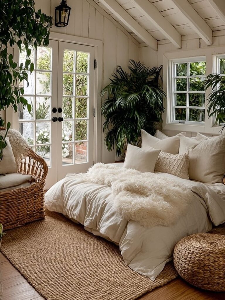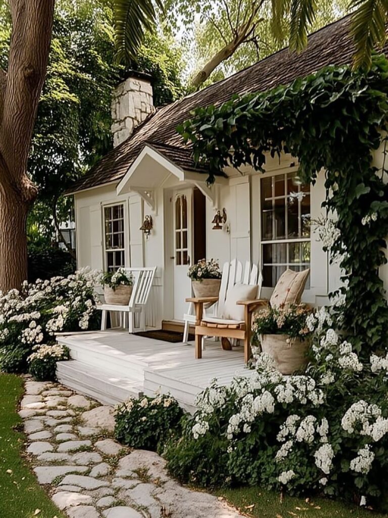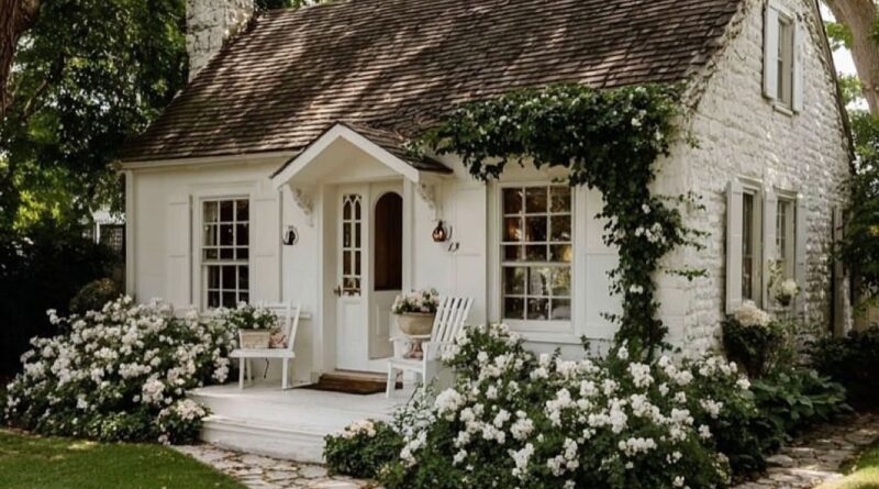 A Peaceful White Cottage Wrapped in Flowers
