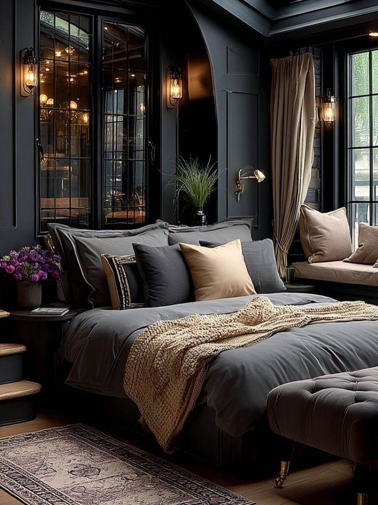 Nestled at the edge of a peaceful neighborhood and surrounded by towering trees and mountain views, this modern cottage stands as a perfect blend of elegance and simplicity. Its clean lines, soft beige exterior, and striking black accents immediately draw the eye. The warm glow from the wall-mounted lanterns adds a welcoming touch, making the home feel inviting even before stepping inside.