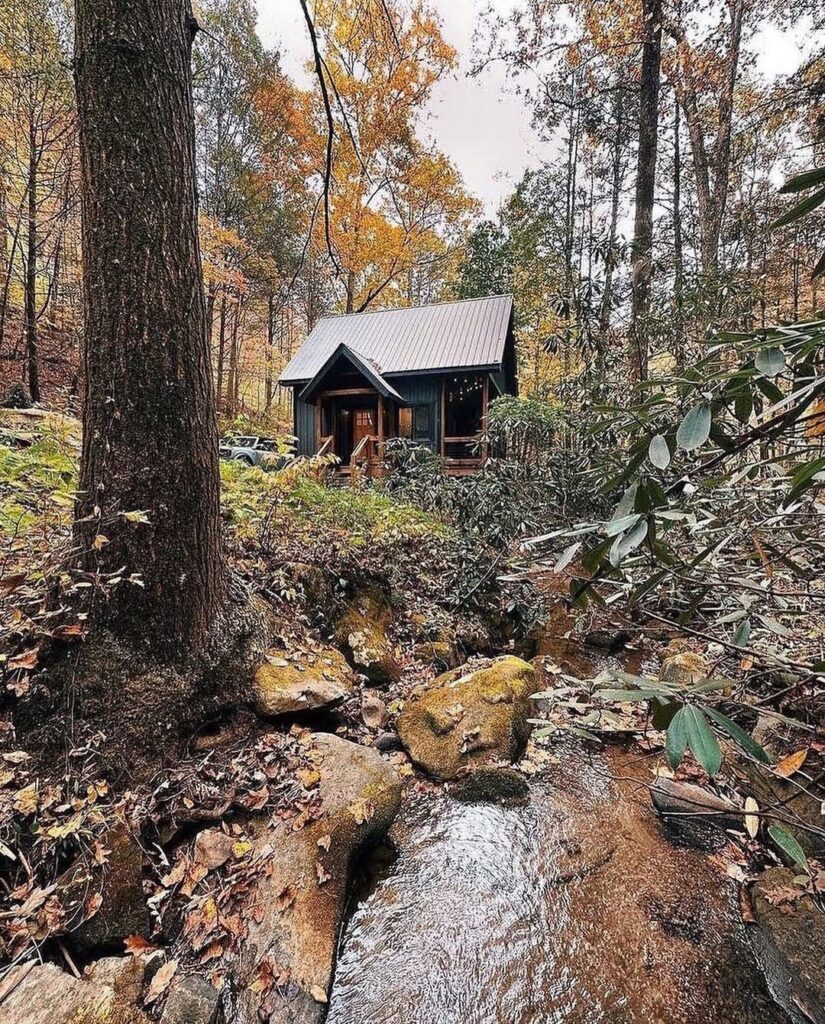 Tucked deep in the heart of a golden autumn forest, this cozy cabin stands as a peaceful retreat from the noise of the world. Surrounded by tall trees painted in shades of amber and rust, the cabin feels like a secret place meant only for those who crave stillness, fresh air, and the soft crackling of fallen leaves underfoot.