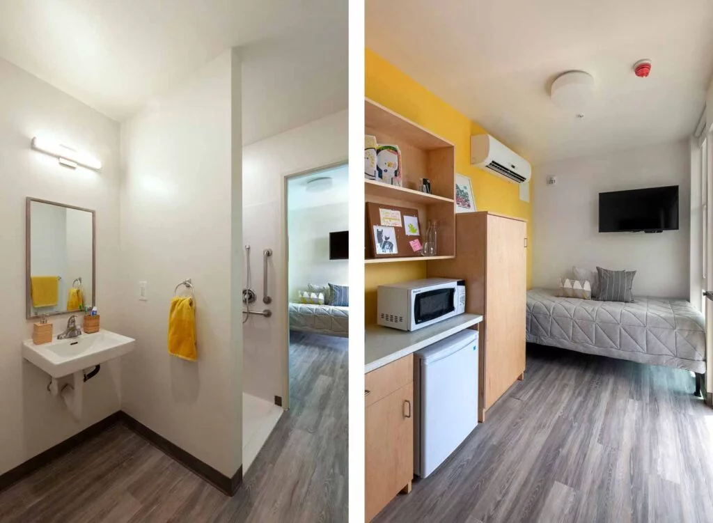 Beyond comfort, the interiors were intentionally designed to provide dignity and privacy—two elements often missing in traditional shelter settings. The efficient layout maximizes livable space while maintaining a sense of warmth and normalcy. Large windows bring in natural light, and the clean, modern finishes help residents feel grounded in a space that truly feels like home. By transforming simple steel boxes into safe, welcoming environments, the project demonstrates how thoughtful design can restore both stability and hope.