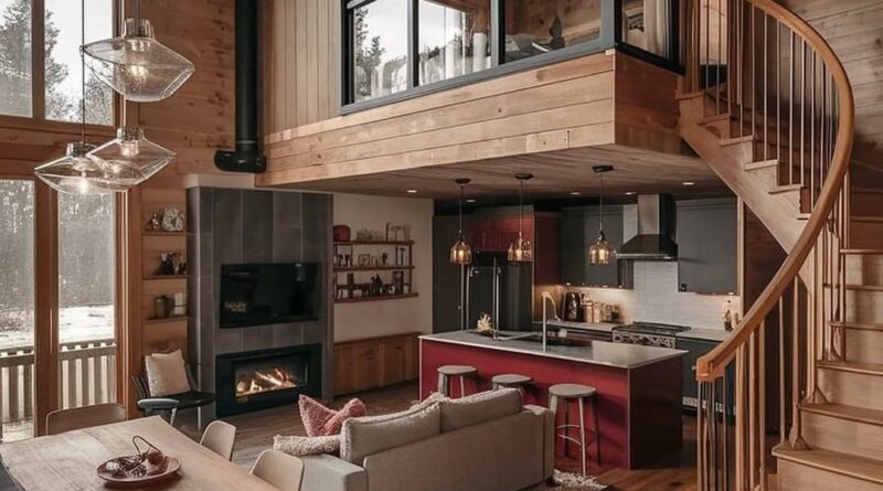 This inviting loft combines modern comfort with a homey atmosphere. The open living room, warm wood accents, and elevated bedroom create a perfect balance between functionality and relaxation.
