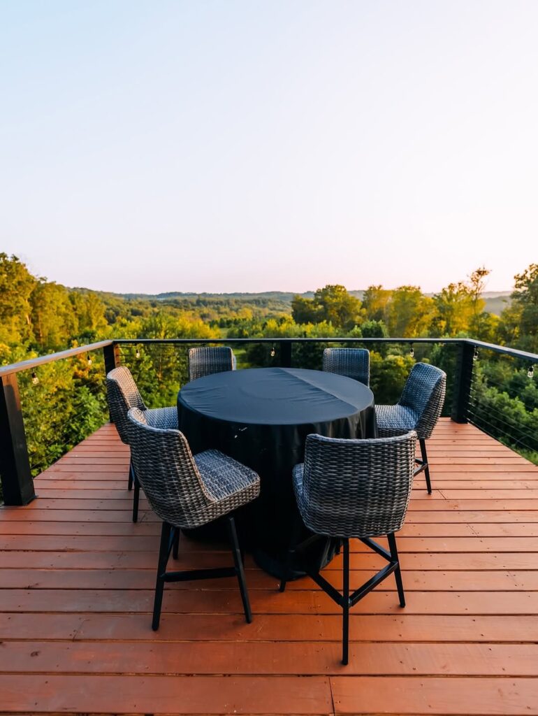 utdoor terraces and upper-level decks extend the living space upward, offering areas for relaxation and socializing. These elevated spaces highlight the home’s emphasis on indoor-outdoor living.