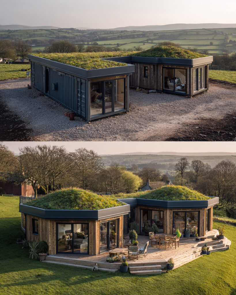 From Steel Containers to a Green-Roof Retreat: A Stunning Countryside Transformation