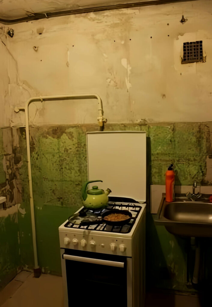 The first step was to clear out everything unnecessary, stripping the kitchen down to its essentials. To keep things functional during the renovation, he left the sink and gas stove in place, making sure meals could still be prepared along the way. Fortunately, the plastic window had already been installed, giving him a small advantage before the real work began.