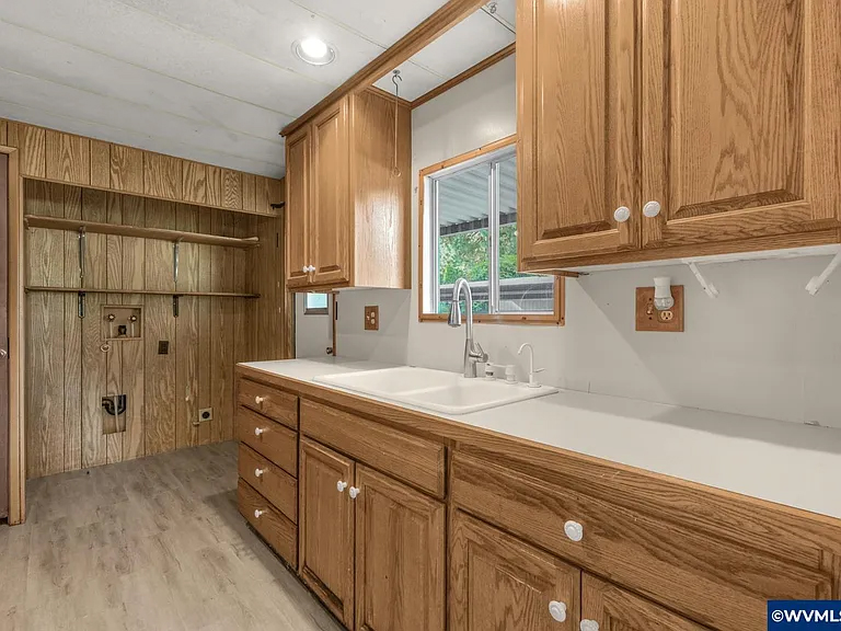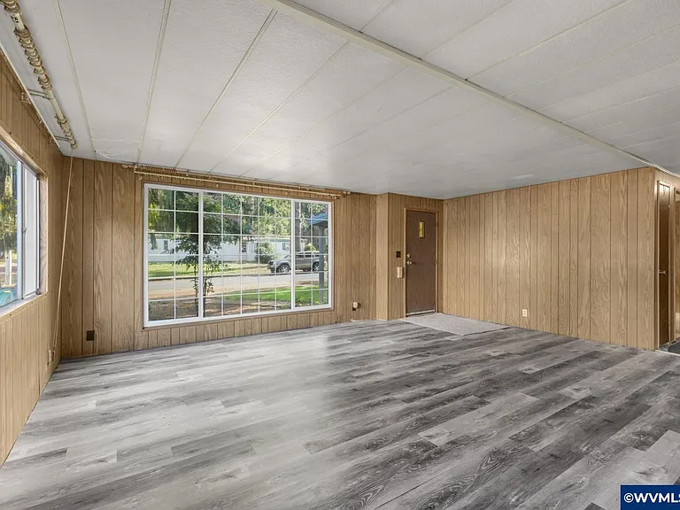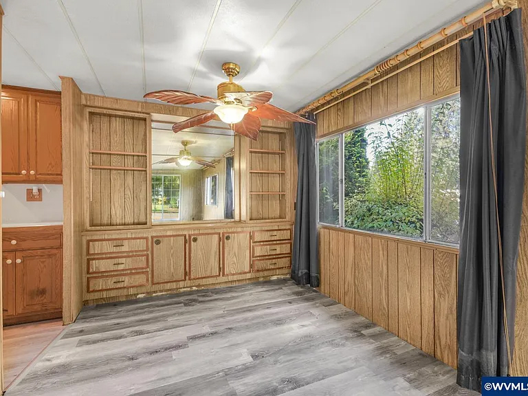 The layout is simple, practical, and easy to live in, with enough room to arrange both your living and dining areas comfortably. While parts of the interior still feature classic wood paneling, it’s balanced nicely by the lighter flooring and the home’s overall open, airy feel. As a result, the space offers a solid foundation whether you’d prefer to enjoy it as-is or make a few light cosmetic updates over time.