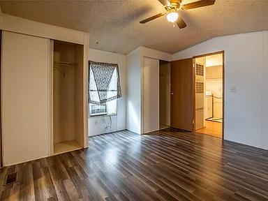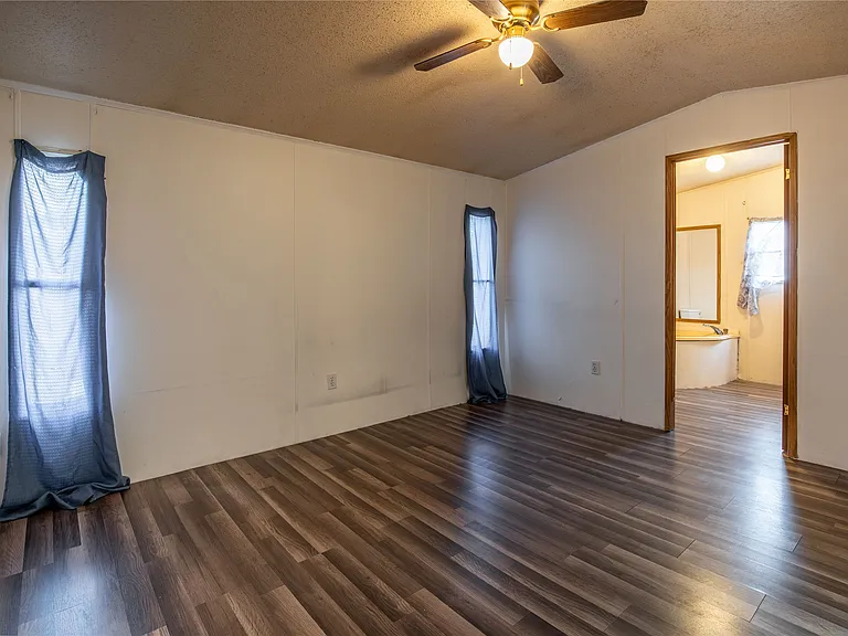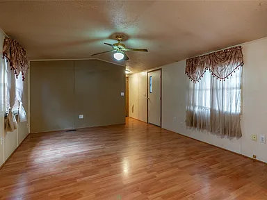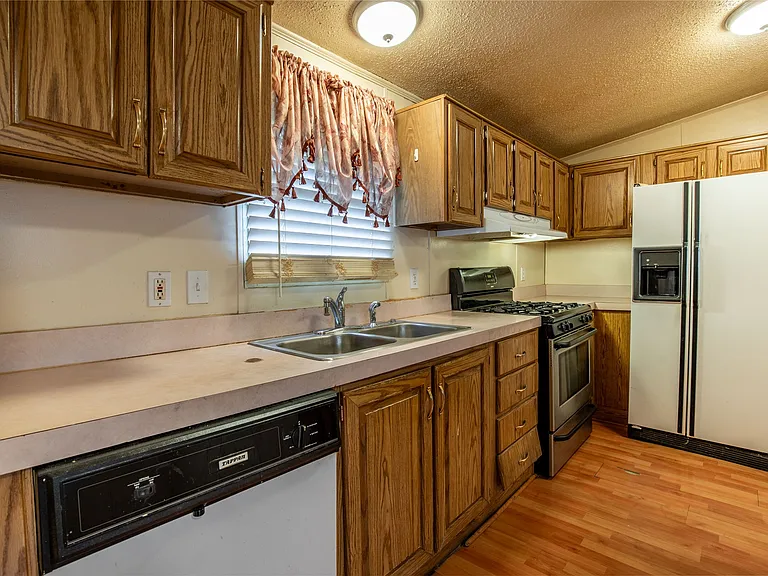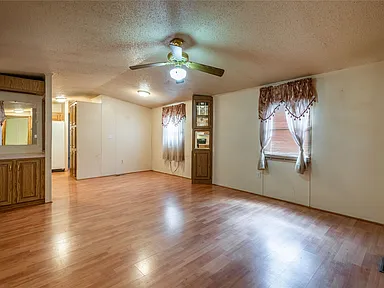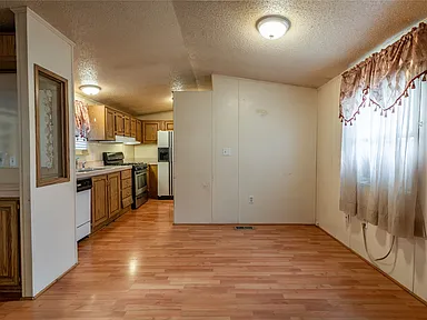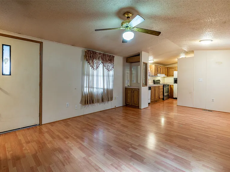 Inside, the home offers a bright and open living space with easy-care flooring and a simple layout that feels both practical and comfortable. Large windows bring in natural light, while the open flow into the kitchen and dining area makes the space feel larger and more connected. Warm wood cabinetry and built-in storage add function and character, creating a solid foundation for everyday living with room to personalize and make it your own.