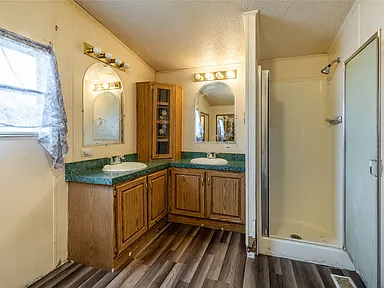 The bathrooms offer a generous amount of space and functionality, with ample vanity storage, large mirrors, and layouts designed for everyday comfort. One bath features a practical tub-shower combination, while the larger primary bath includes a separate shower, dual-sink vanity, and a spacious soaking tub that adds a touch of relaxation. With solid fixtures already in place and room for cosmetic updates, these spaces provide both convenience and great potential to refresh and personalize.