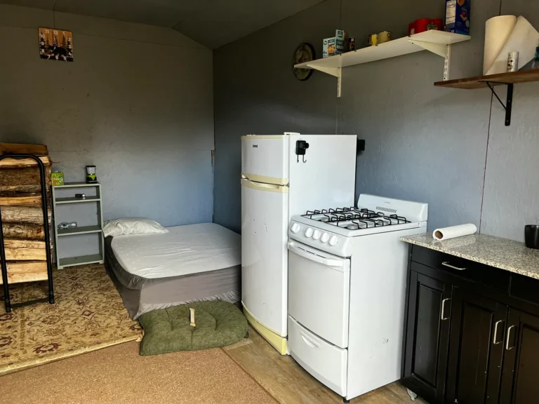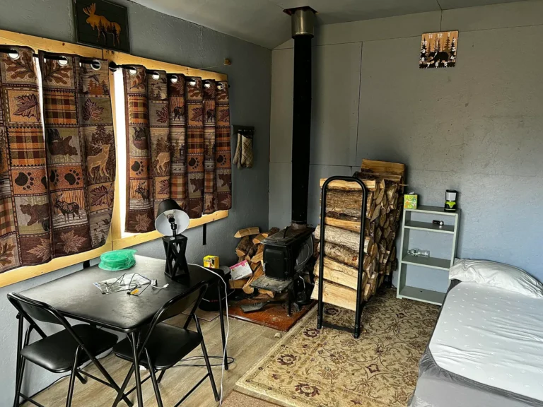 The existing one-bedroom cabin is simple, but it works. Built for living—not for show. A wood stove keeps it warm through colder months, while a propane stove and refrigerator handle the essentials without relying on grid power.