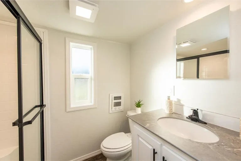 Just steps away, the bathroom provides everything you’d expect from a full-sized home, with a clean, efficient layout that keeps things practical without sacrificing comfort.