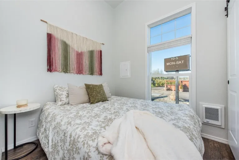 The bedroom offers a quiet, cozy retreat—designed for real rest, not just fitting in a bed. It’s simple, warm, and exactly what you want at the end of a long day.