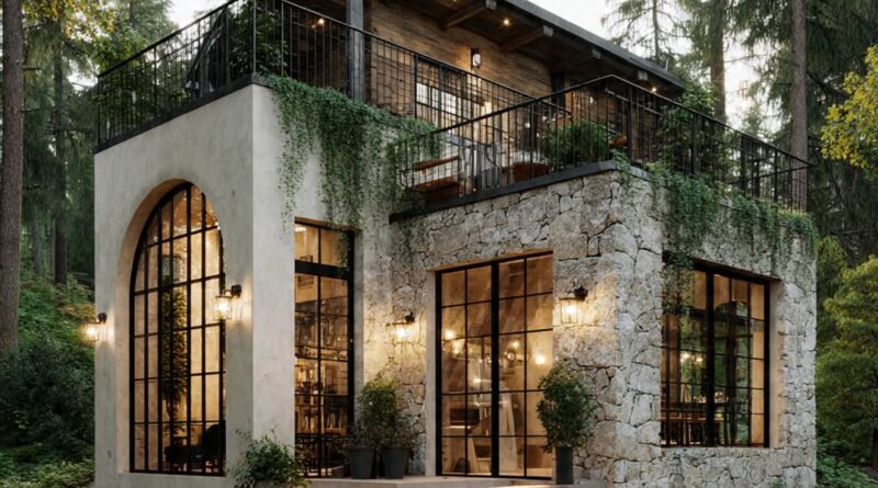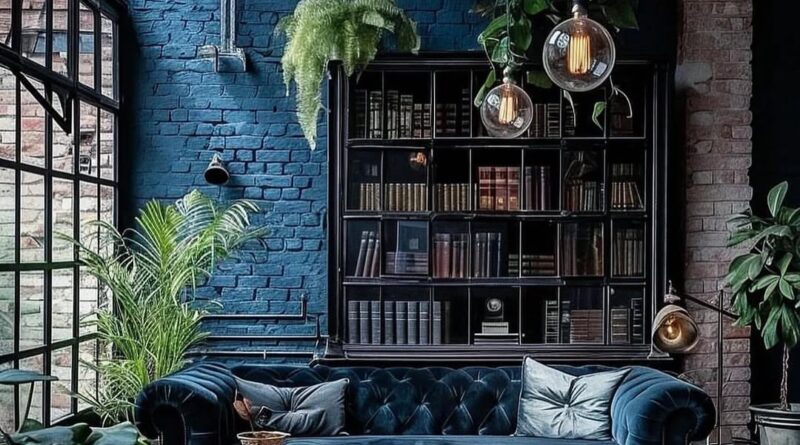 Read MoreThis interior presents a warm, industrial-style loft with dark tones, textured walls, and soft lighting. The open layout blends the